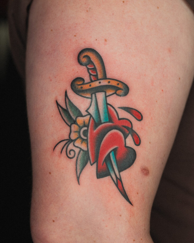 American Traditional Dagger & Heart Flash