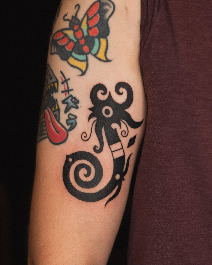 This Borneo tribal one-point flash is perfect as a striking accent to fill the gaps between American Traditional or Black and Grey tattoos. While Borneo tribal designs are typically done in larger sizes, this compact version brings the same bold energy in a smaller format. It’s crafted to harmonize with surrounding tattoos while still standing out with its unique character.