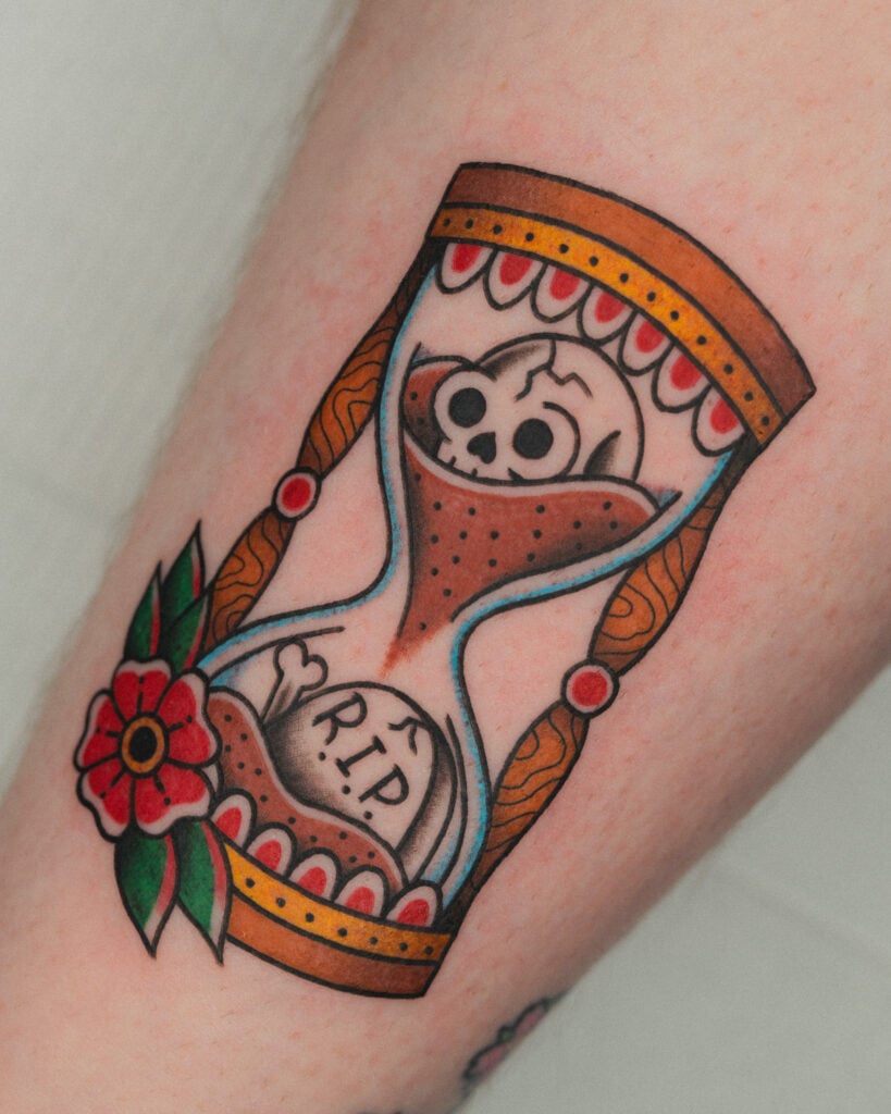 砂時計の中にスカルと墓石が描かれた、ユニークなフラッシュ。